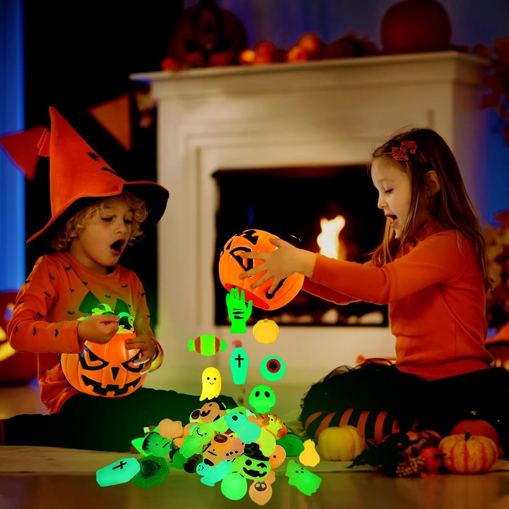 Halloween Goodie Stuffers: These Halloween treat toys are a nice present for Halloween party supplies, Halloween goodie bag stuffers, classroom rewards, student rewards and so on. These cute and light-up toys will definitely bring more happiness and fun to your Halloween night!