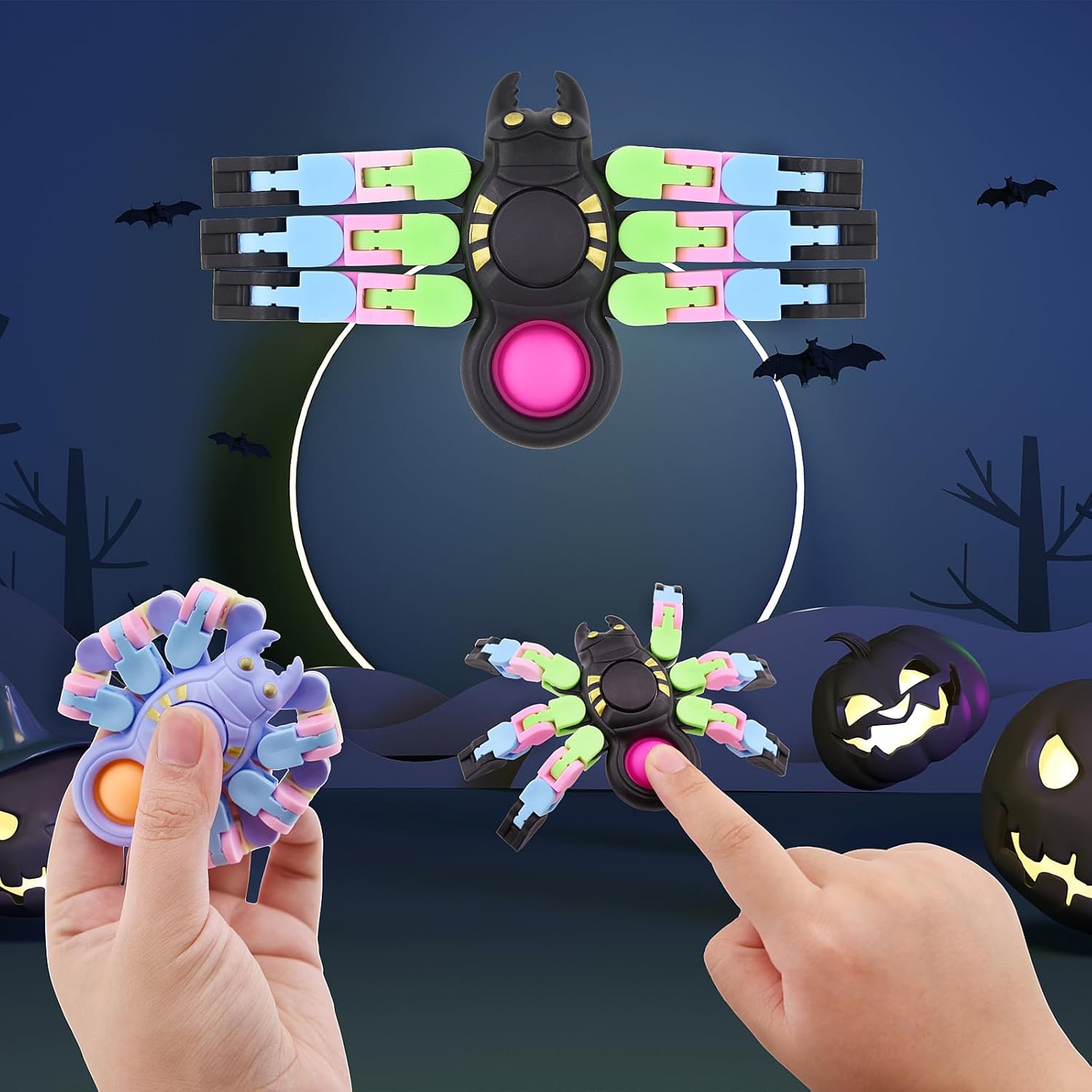 About the Toys: Stress relief for kids boys girls, Indoor decorations for Halloween, Great gifts for Halloween, The toy has a pressing pop and a fidget spinner.