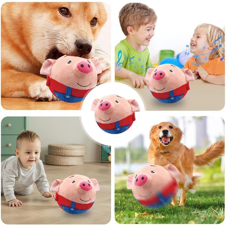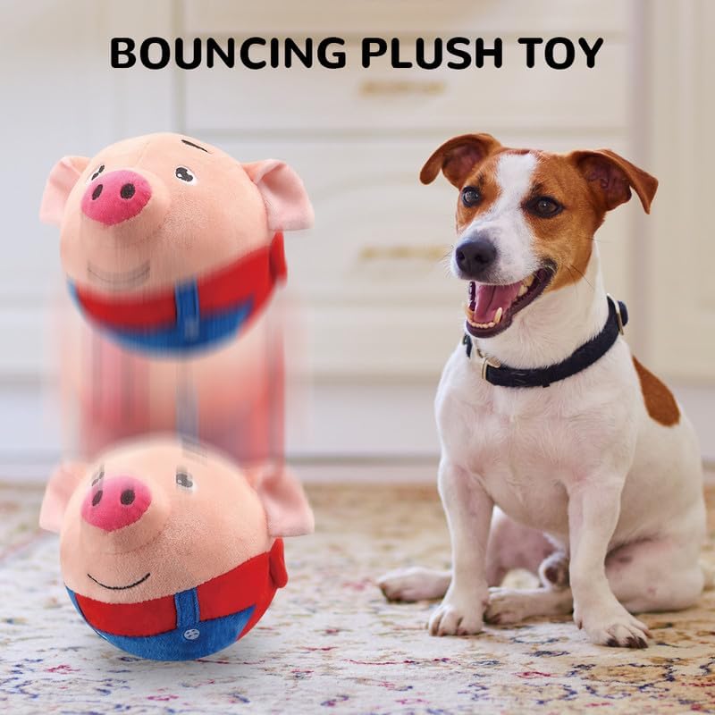 Squeaky Moving Dog Toy, Pig Plush Sound Electronic Dog Toy Rechargeable Pet Bouncing Balls Toy