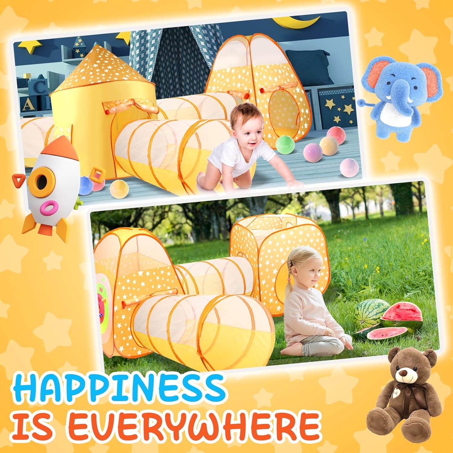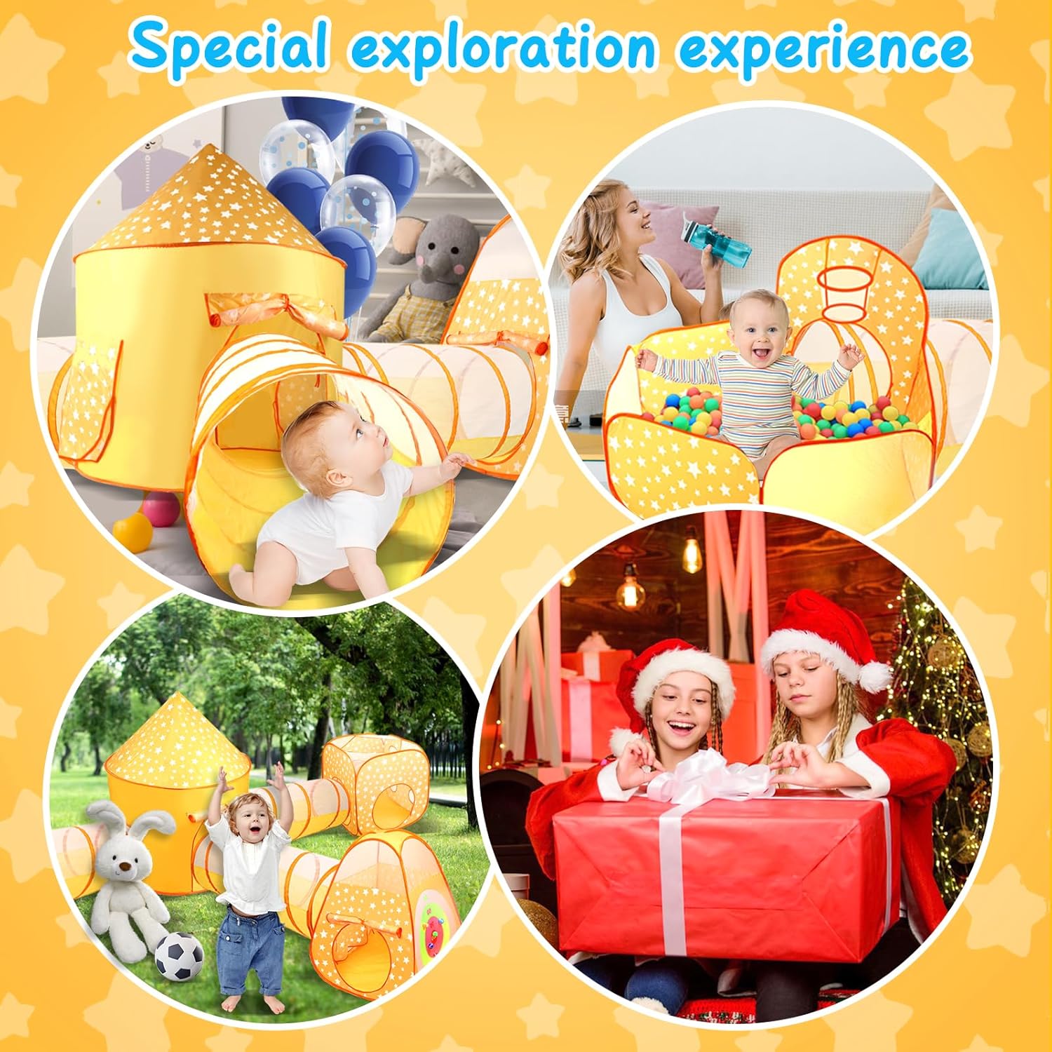 【Infinite Happiness】Extra large exploration space and super rich content, provide diverse experience and diverse fun.Also provide a range of advantages for toddlers, including physical development, sensory stimulation, imaginative play, social interaction, and cognitive skills.This Combination of toddler tents are the best gift for toddlers.