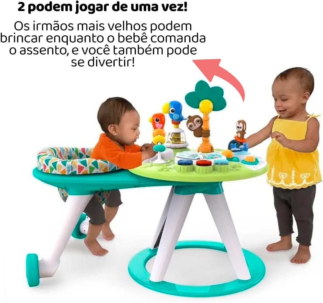 The Around We Go 2-in-1 Walk-Around Activity Center & Table from Bright Starts is made for multiple modes, multiple milestones, multiple kids at once! Keep playtime in one place with an activity center that features a walk-around seat for easy access to all the toys. Your family will get years of use with this multifunctional, grow with me activity center. Remove the walk-around seat as baby learns to stand, and you’ll transform the activity station into a toddler table. Siblings can get in on the fun, too, because multiple kids can play at once! This Tropic Cool fashion is packed with island-inspired entertainment that help baby practice gross motor skills. The interactive drum set features 2 modes of use. Flip between tiki tunes and animals sounds to keep playtime totally tropical. Includes 10 activities: Musical and light-up drum set, spinning animals, ratcheting toy, bead chaser, surfing monkey and more.
