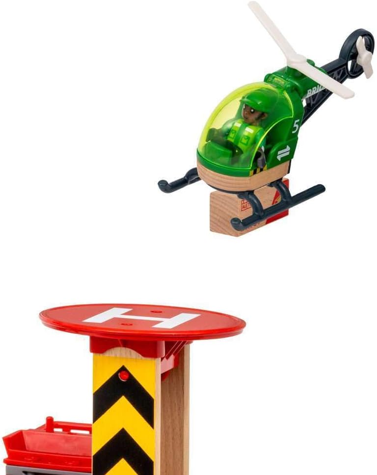 The BRIO World 36010 Cargo Mountain Set is a dynamic play experience that takes fun to new levels with its multi-layered crane and cargo action. From the helicopter pad to the deep caves in the mountains, the set offers a versatile and engaging layout for kids to explore. Made with premium plastics and FSC-certified European beech wood, it ensures durability and longevity while supporting responsible forestry. The set provides an engaging and educational experience, promoting real-life based railway play that helps kids understand their environment while enhancing their fine motor skills. The large mountain pieces offer customizable features, allowing kids to modify and create various train set designs. This versatility makes it an excellent standalone set or an addition to existing train set toys. Traverse and manage the challenging work site using sturdy machinery, including a helicopter, cargo train with wagons, and loading truck, for an immersive and thrilling play experience.