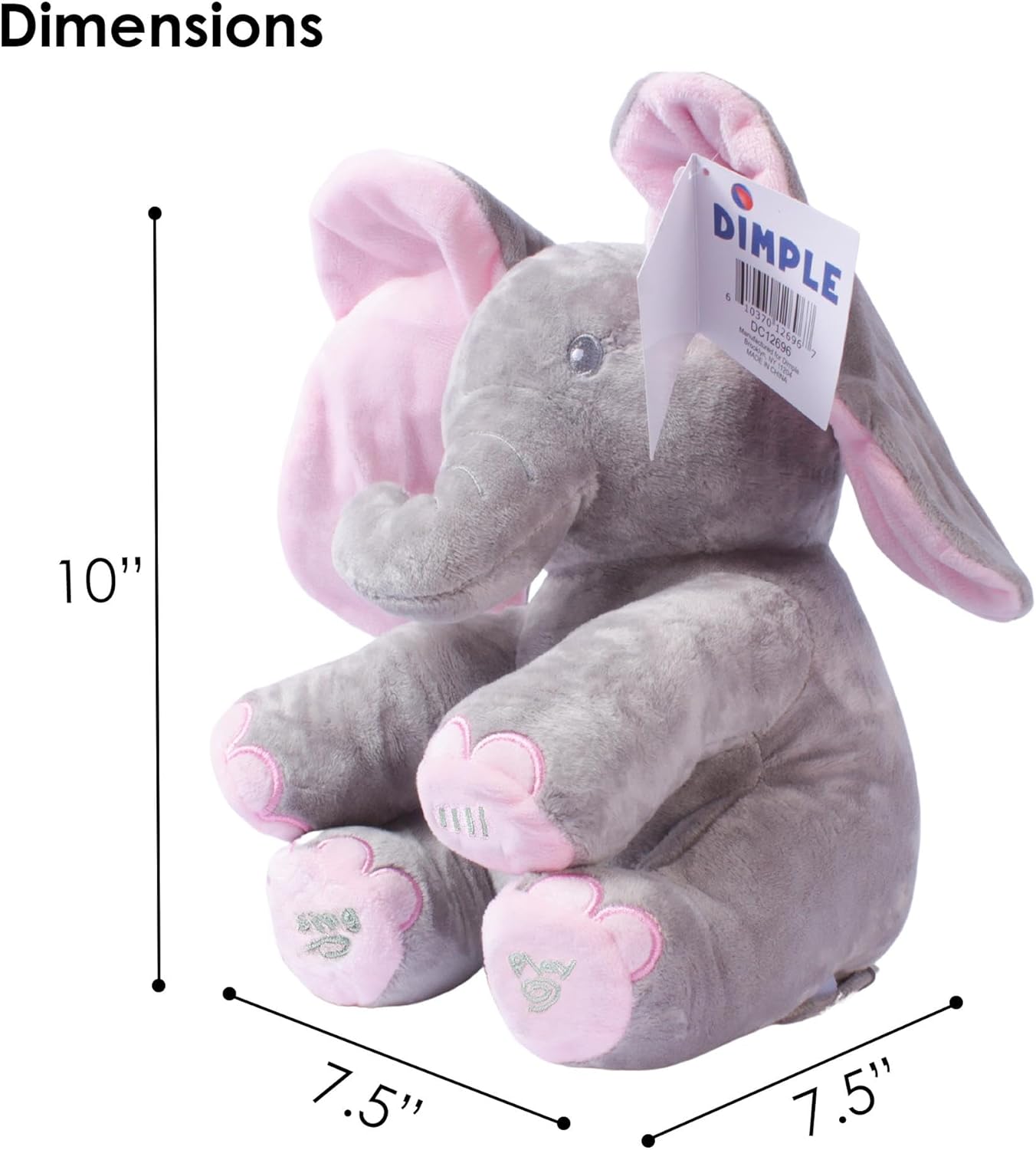 Elephnat Stuffed Animal for Babies:The Dimple Baby Animated Stuffed Plush Singing Peek A Boo Elephant is a captivating Interactive Musical Toy designed specifically for toddlers. Its endearing peek-a-boo feature & moving ears entertain & engage little ones for hours. Plush Elephant has two exciting play modes that entertain and interact with your child for hours of fun! This adorable plush elephant engages children w/ its interactive peek-a-boo toy, entertaining them for hours. Its moving ears cover its eyes & play peek-a-boo, creating joyous moments for toddlers.