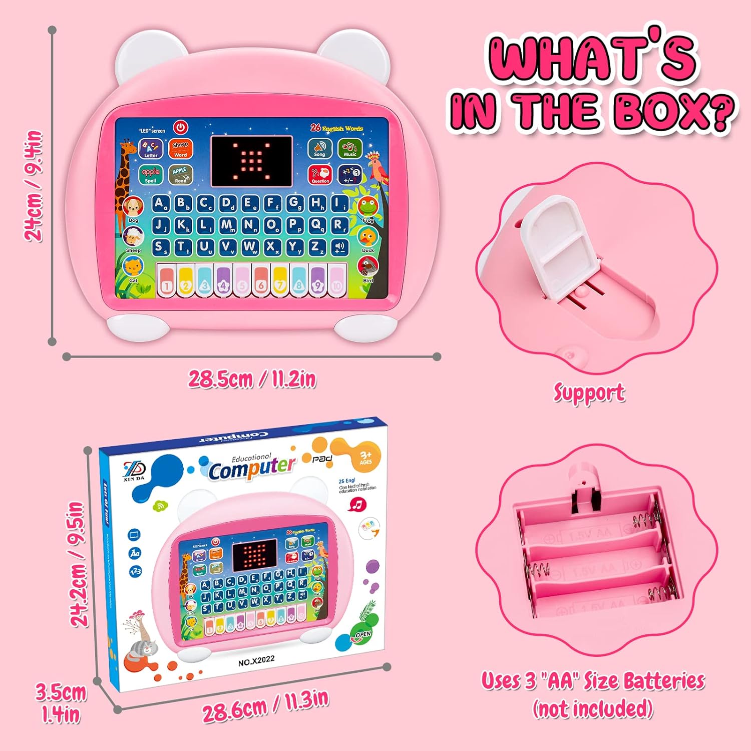 🌈【High Quality Kids Early Learning Toys Tablet】- This educational toy is suitable for 1-2-3 years old kids autism, just need to press the switch to start fun playtime. The toddler tablet has smooth edges and surfaces, just needs a light wipe to get back to neatness, requires 3 AAA batteries (not included). Listening, speaking, reading, singing, playing piano songs, simulating animal sounds and other functions, BUY IT NOW and brings endless fun to children! Best gifts for 2 year old girls boys!