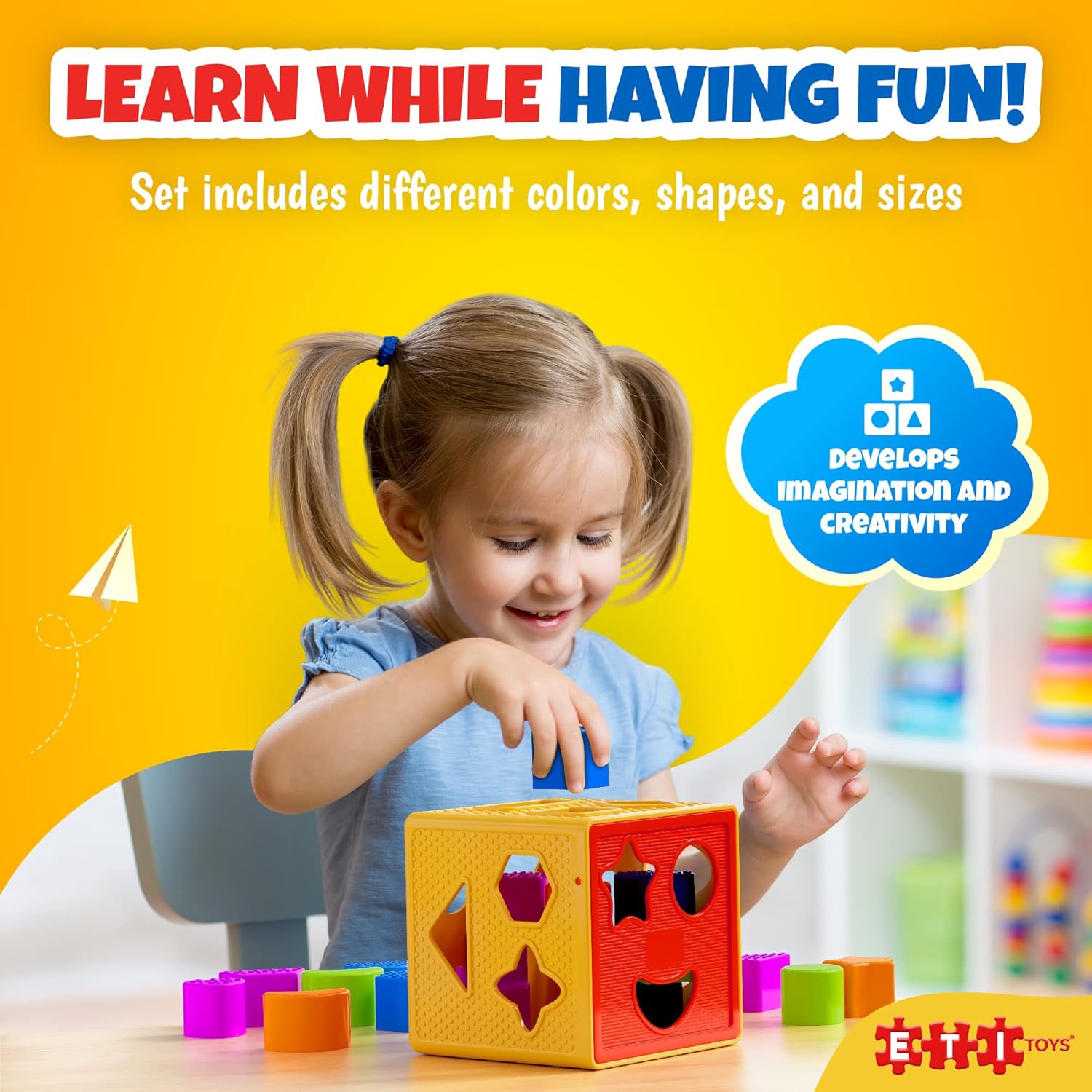 Be the first to review “ETI Toys, 19 Piece Unique Educational Sorting & Matching Toy for Toddlers. Colorful Sorter Cube Box & Shapes, 100 Percent Safe, Promotes Fun Learning, Creativity & Skills Development”