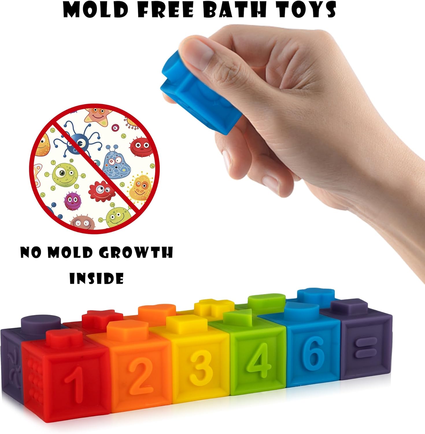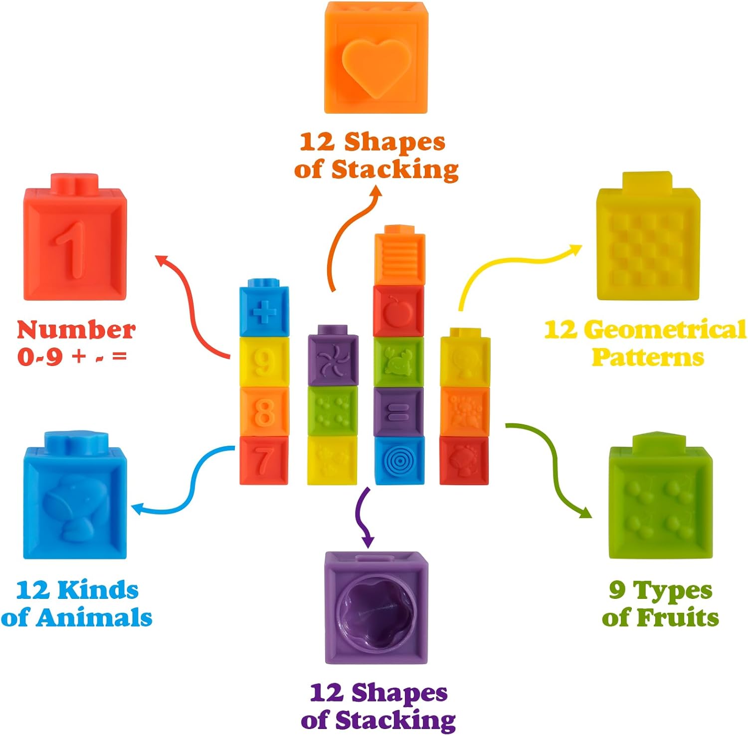 Baby Gifts Stocking Stuffers : Soft stacking blocks and easy to squeeze for babies and toddlers to play, making a squeak sound. These baby building blocks are soft, durable and easy to be picked up and stacked together by babys hand.