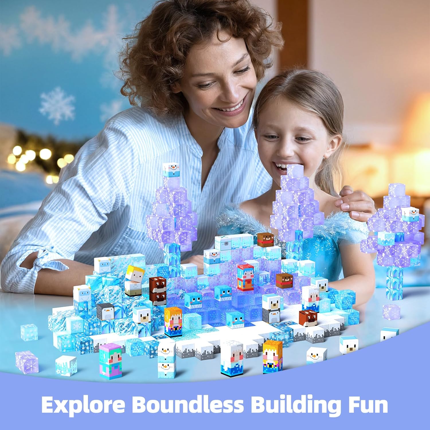 Ice-Themed Play Set: The frozen theme is beautifully designed for girls, fulfilling their dreams of a magical ice world. With this construction set, they can build ice princess castles and immerse themselves in the wonder of a frozen kingdom