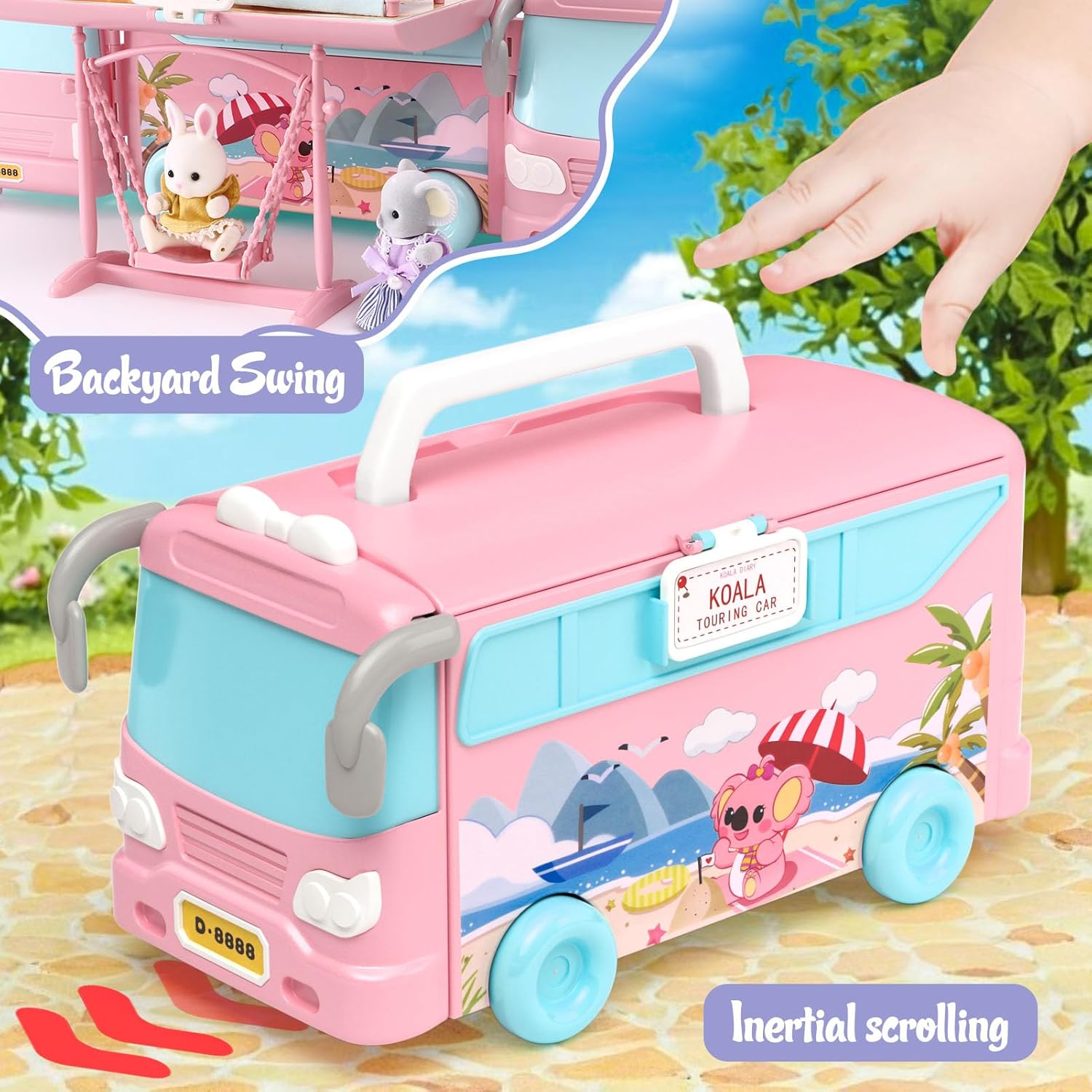 UNIQUE CAMPER DESIGN : It’s not just a doll house; it’s a portable dream home on wheels! With a sturdy handle, it’s effortless to carry around for both indoor and outdoor play, allowing your kid to take their dollhouse adventures wherever they go. It can be unfolded and folded at any time, seamlessly switching between vehicle mode and dollhouse mode. The innovative sliding feature adds an extra element of excitement, capturing the little girl’s attention and making playtime even more engaging