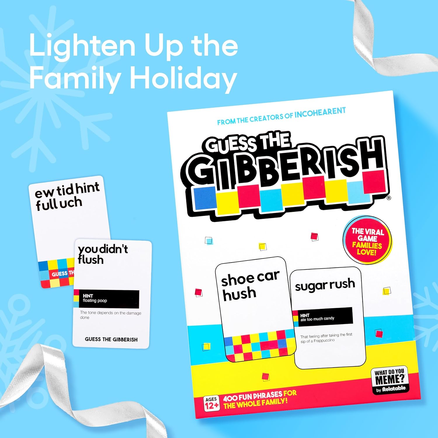 Guess The Gibberish Card Game for Families by Relatable – From The Creators of Incohereant, Christmas Games for Family Party, Funny Hanukkah Gifts for Kids 12+, Includes 400 Cards & Sand Timer