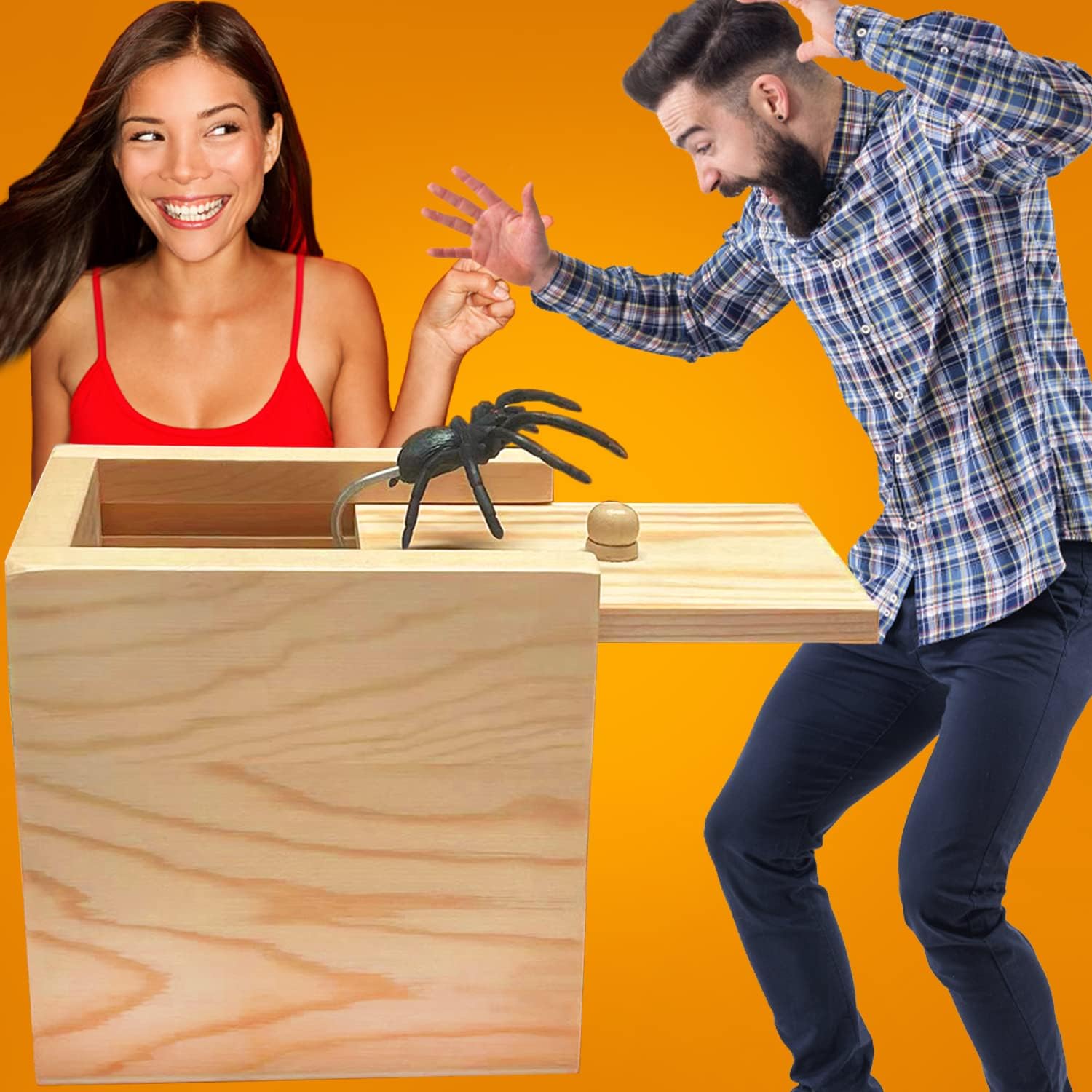 HANDMADE, SAFE & DURABLE: Our spider box prank gift box handcrafted from natural wood materials, use eco-friendly and non-toxic paint. Sturdy construction, polished smooth edges and corners. Best prank gift box for kids and adults. Have fun and enjoy safety!
