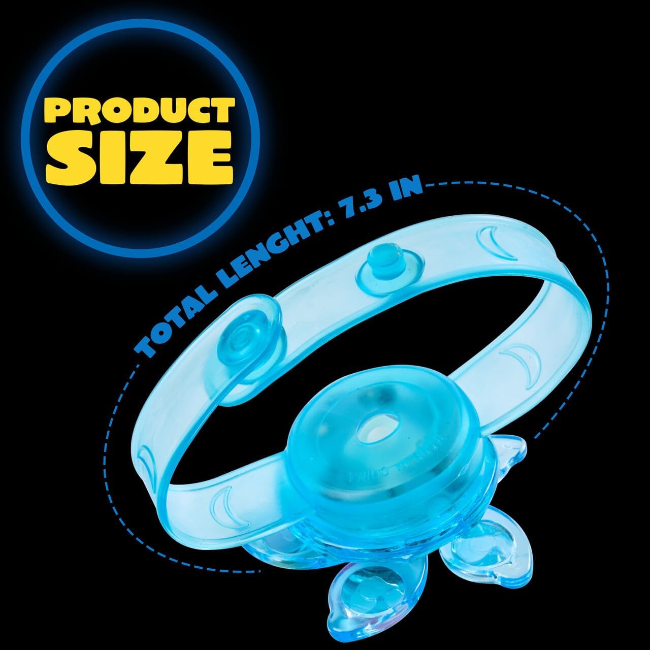 3 COLOR LIGHTS, 3 LIGHTING MODES: Elevate your style with dynamic illumination – our set includes 12 Light Up Spinning Bracelets with three vibrant color lights and three captivating lighting modes ADJUSTABLE BAND: Ensure a comfortable fit for everyone with the adjustable band feature, making these bracelets suitable for all wrist sizes SIZE: 7.5” x 0.6”: Designed with the ideal dimensions of 7.5 inches by 0.6 inches, these bracelets strike the perfect balance between style and wearability REUSABLE AND FUN: With replaceable batteries, these fidget toys bracelets are reusable for countless occasions, ensuring continuous enjoyment, is perfect for kids party favors and can be used as goodie bags stuffers for birthday parties, Christmas, Halloween, Valentine’s Day, Easter party supplies TRENDY ACCESSORY: Stay on-trend with these light-up bracelets that add a futuristic and playful element to your outfit, making you stand out in any crowd