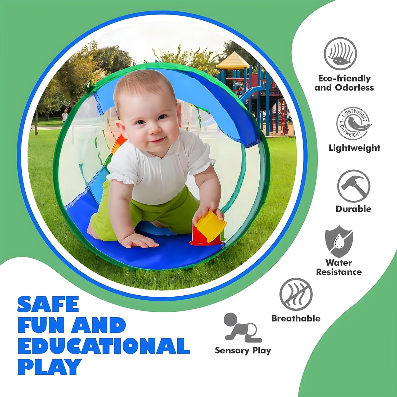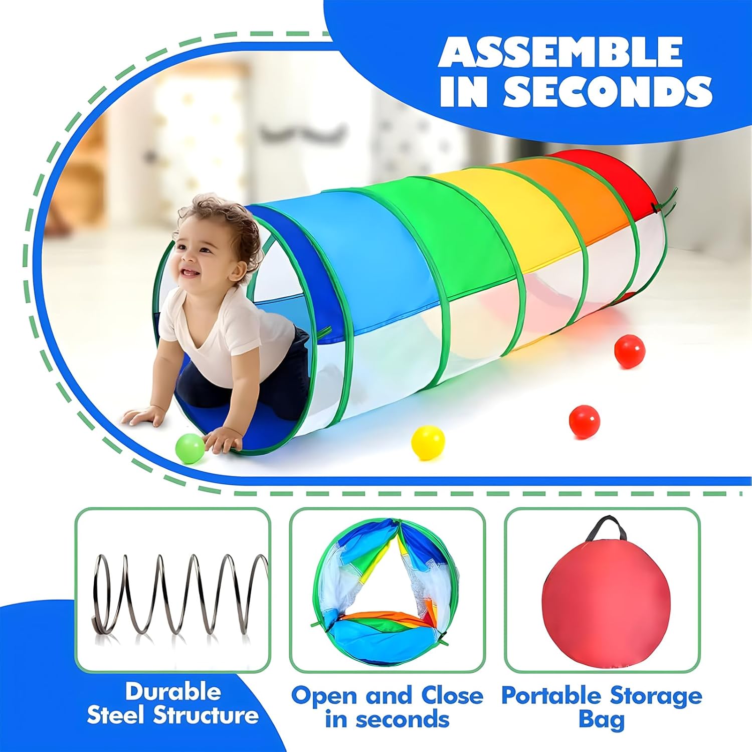 CREATIVE TODDLER CRAWLING TUNNEL – Stimulate your toddler’s senses and promote physical development with our innovative baby tunnel crawl indoor. Encourage creative play and enhance lower limb strength with this essential play tunnel for curious explorers.