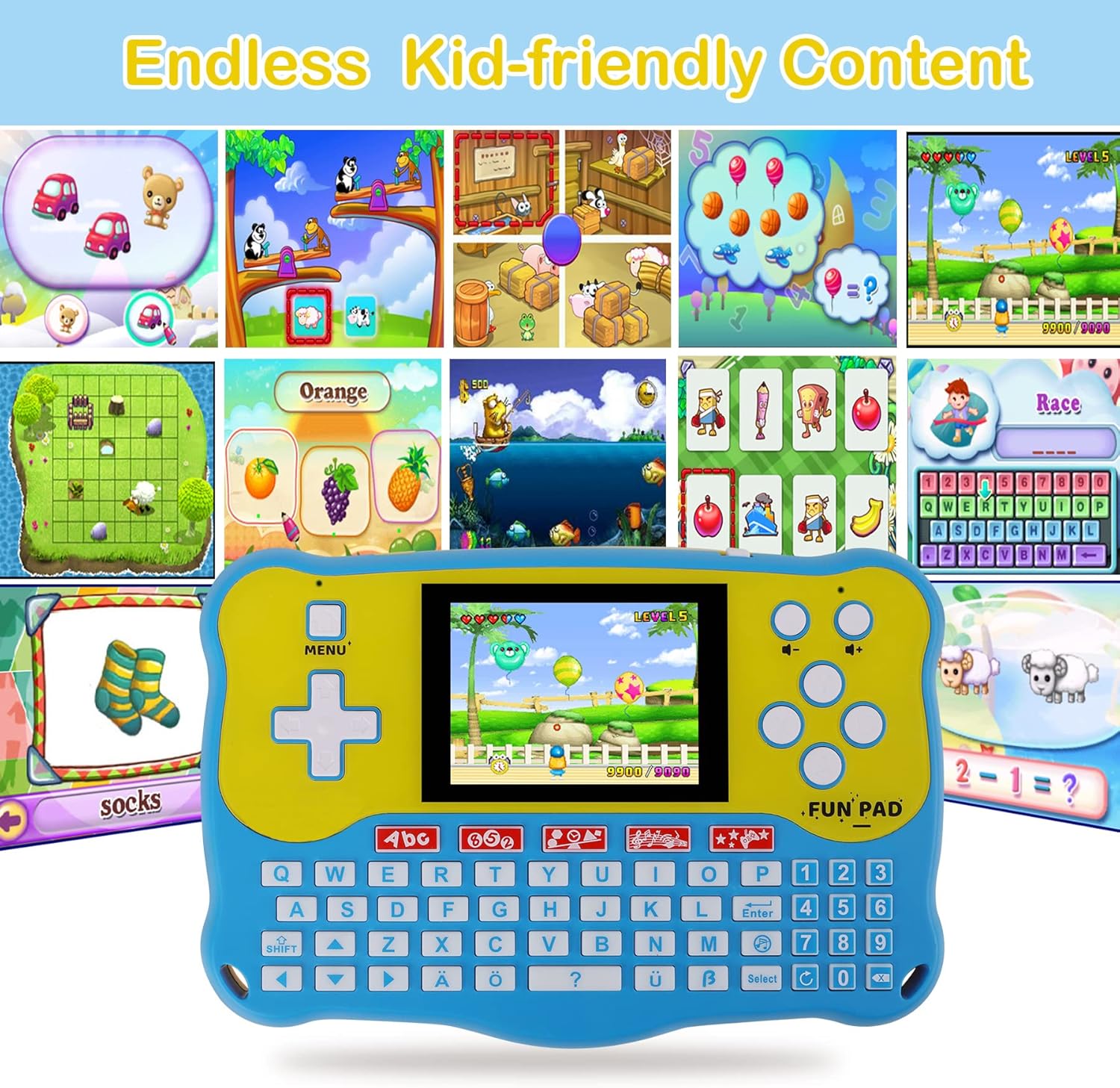 【Bonus Games for Fun】50 fantastic varieties of games, which are full of excitement and challenge. Sports, puzzle, memory, logic, action, racing, strategy, math, adventure and more. The kids hand-eye coordination, thinking and problem solving skills are improved when they are playing games. It is definitely a perfect educational toy for young children, suitable as birthday gifts, Christmas gifts, rewards, etc.