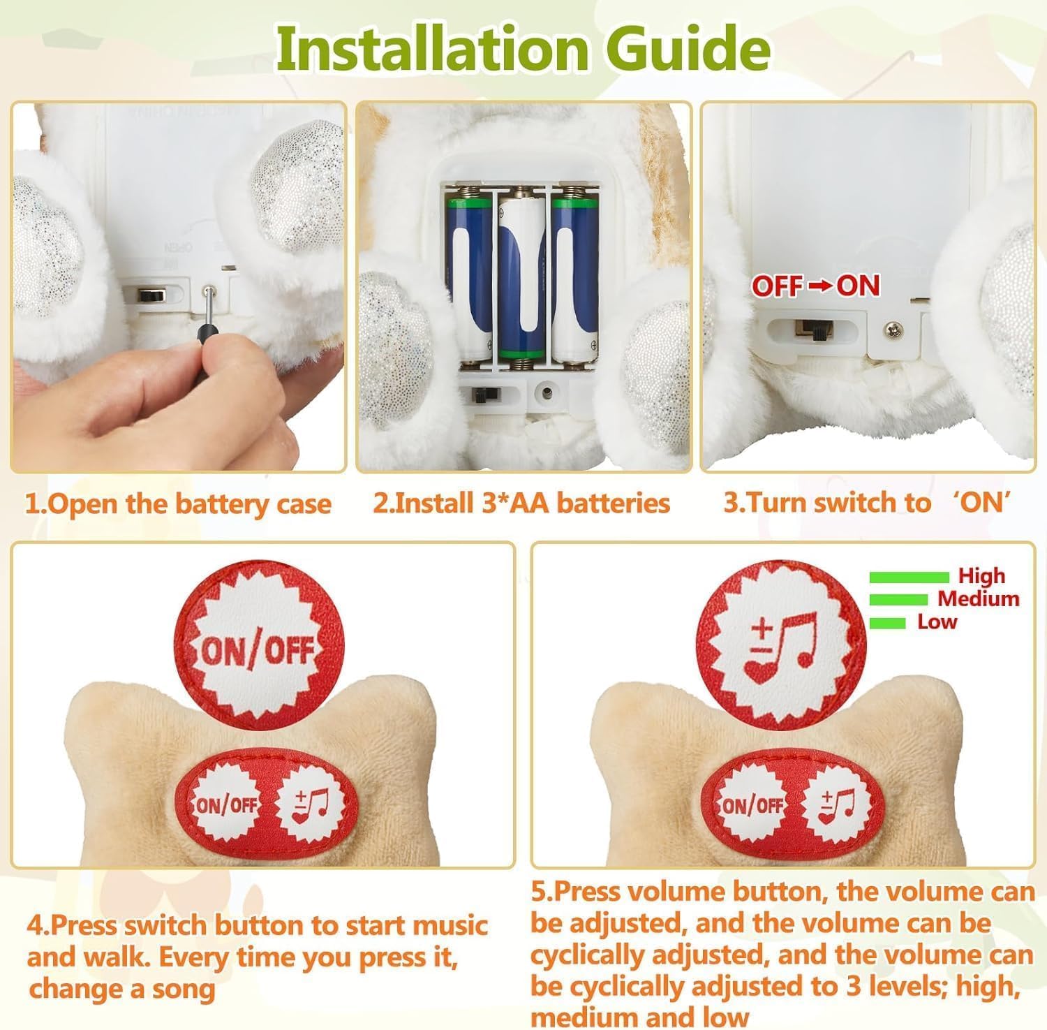 Perfect After-Sales Guarantee: Walking Interactive Dog Toys complies with international children’s toy safety standards. If you have any problem after receiving the package, such as missing battery back cover, unable to walk, sing,dance,not working properly or other dissatisfaction, you can contact us immediately. Suitable for children over 3 years old.
