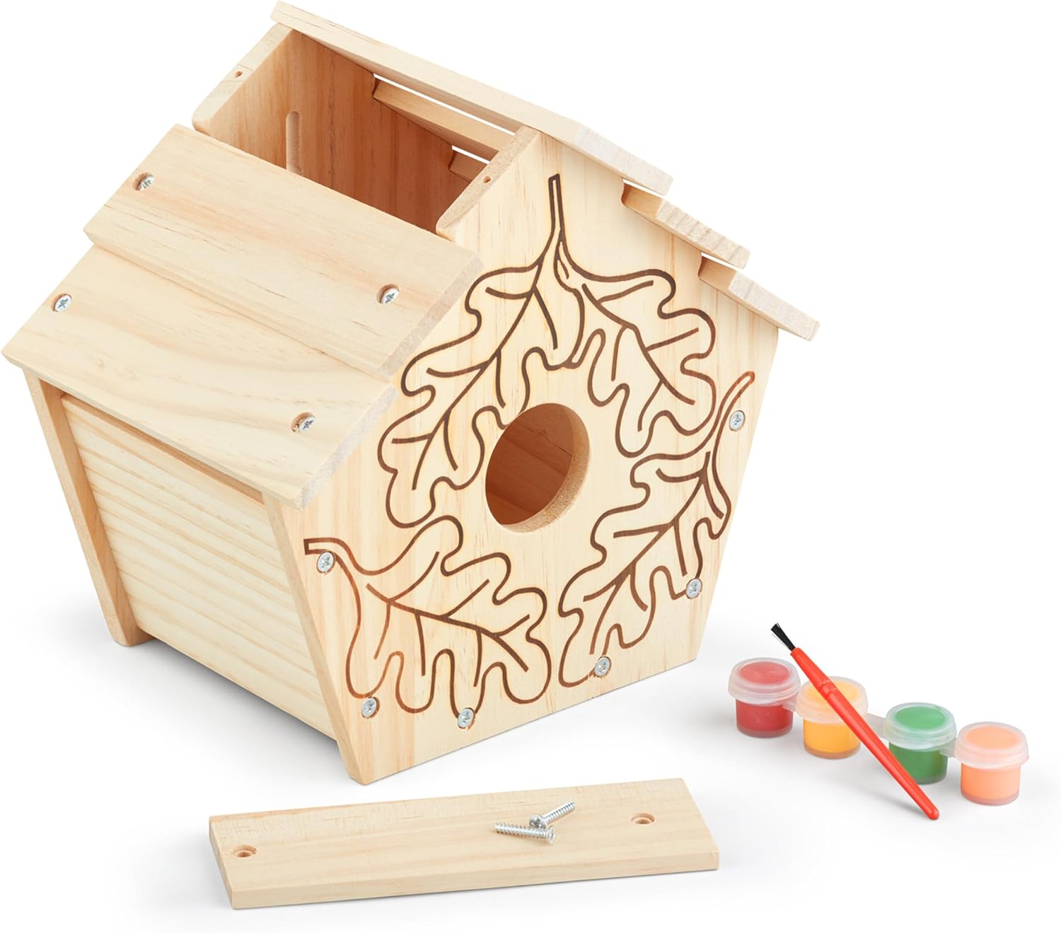 Build Your Own Wooden Birdhouse: This easy-to-assemble wooden birdhouse includes 10 wooden panels, screws, 4 pots of paint, and a paintbrush to add unique, personal touches to create a home-tweet-home