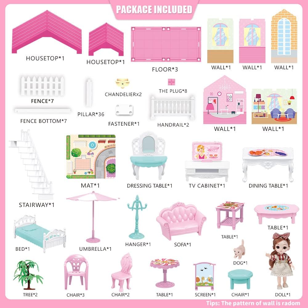 Diy Creative Learning Toys – It is easy to assemble with detailed step-by-step assembly instructions. Our dollhouses can be assembled into endless possibilities stable shapes to realize your girl’s princess dream. It can inspire your children’s creativity & imagination and exercise hand-eye coordination and improve STEM learning skills.