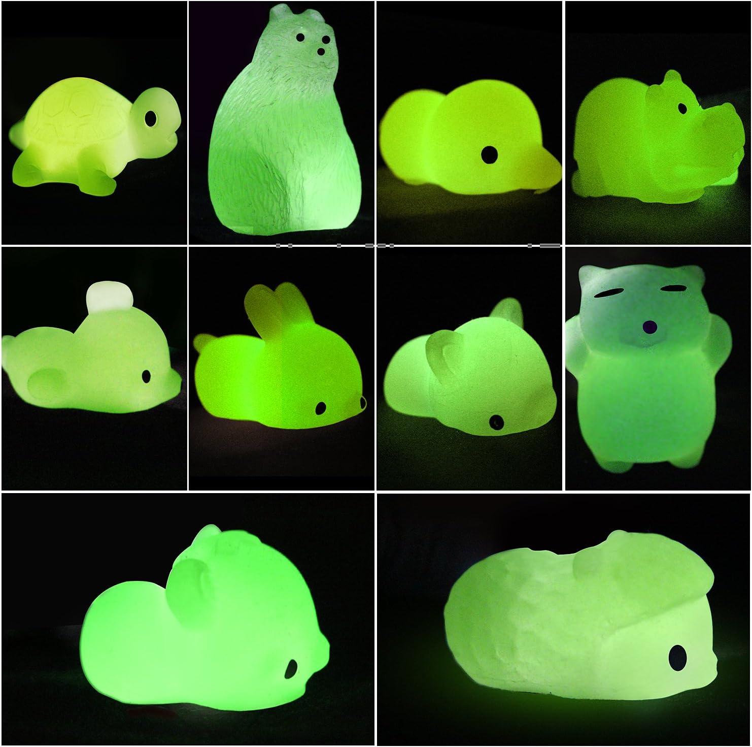 Package includes 30 * glowing mochi animal toys, which are made of high quality tpr. After the sun and light irradiation, these kawaii animal toys will glow in the darkness.