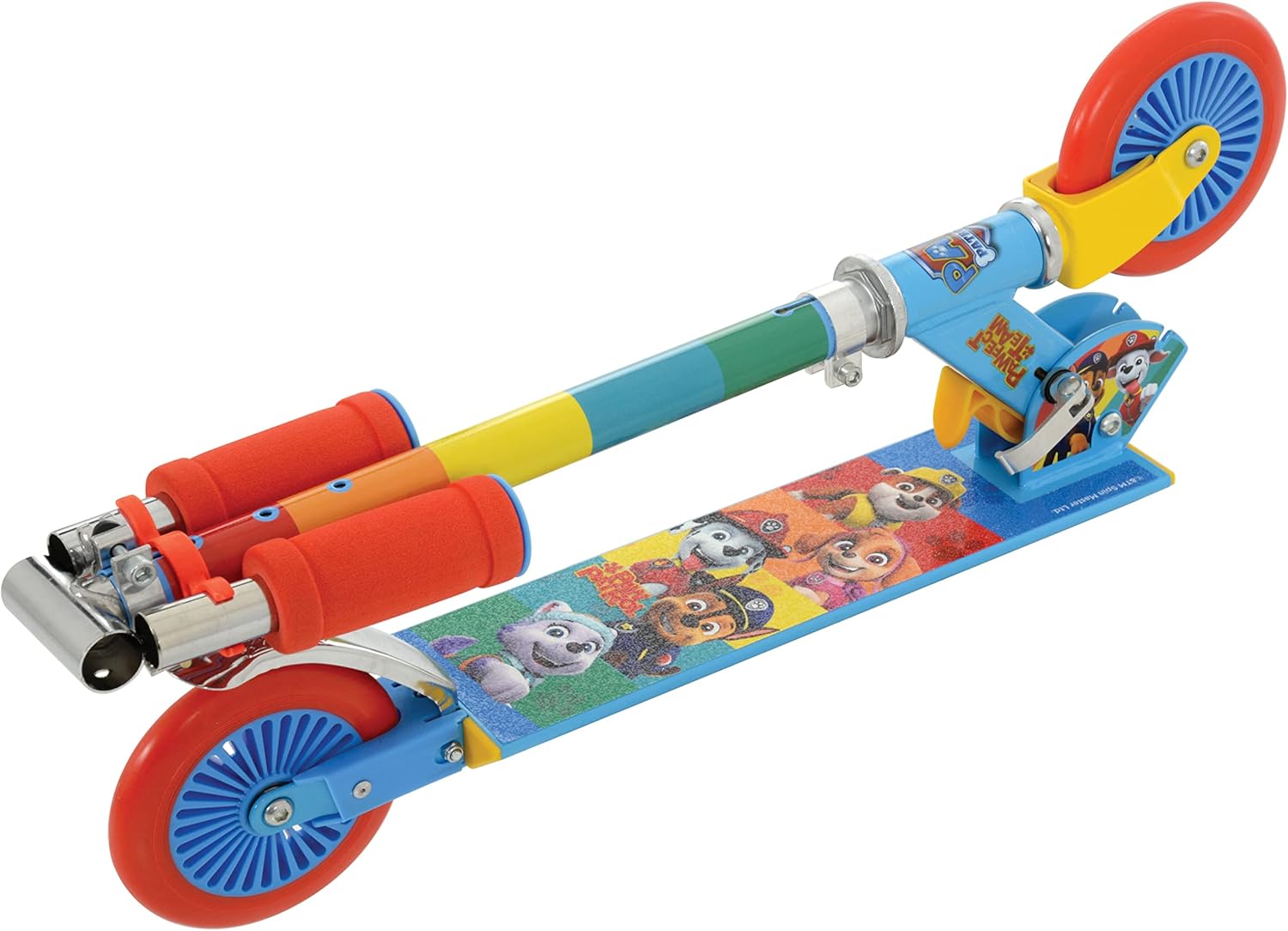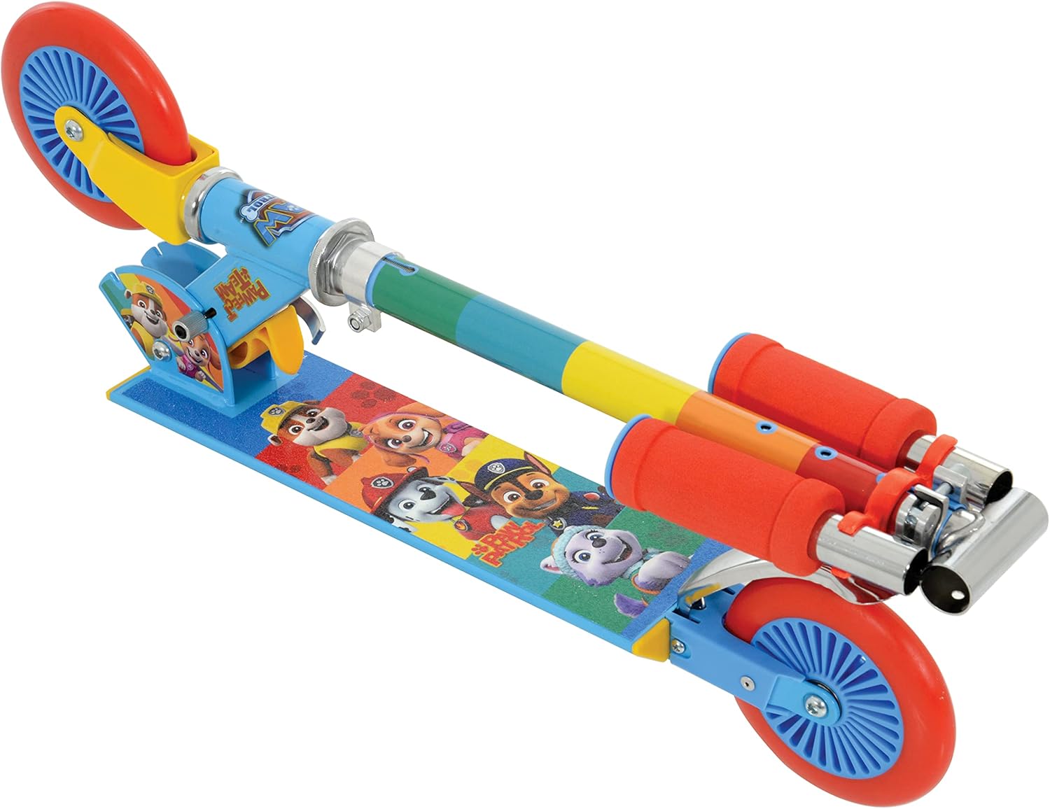 Paw Patrol Licensed 2 Wheel Folding Scooter with Non-Slip Platform and Rear Brake, Height Adjustable Handlebar (80cm Max-74cm Min)