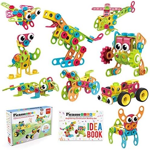 PicassoTiles STEM Learning Toys 250 Piece Building Block Kids Construction Engineering Kit Toy Blocks Children Early Education Playset w/Free IdeaBook, Power Drill, Clickable Ratchet, Age 3+ PTN250