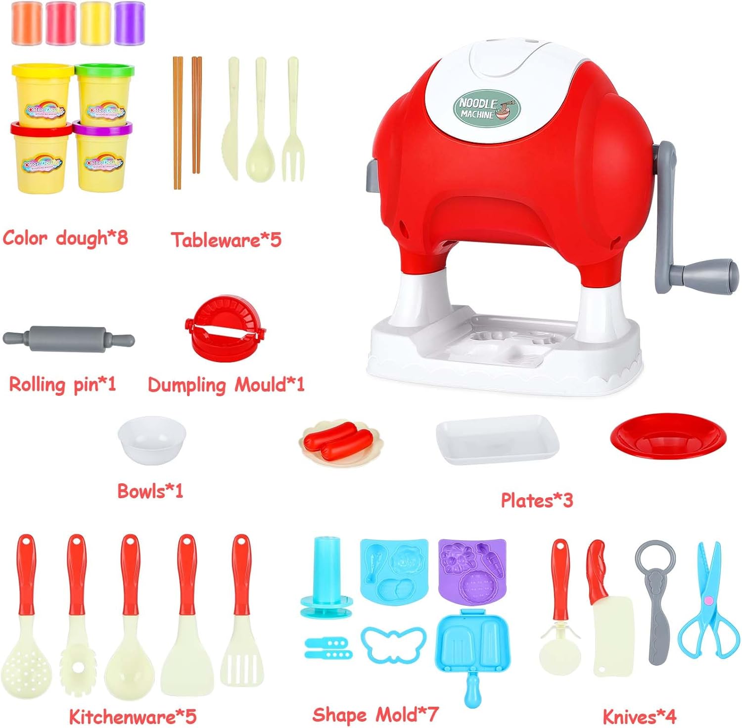 The noodle machine is easy to turn, and the handle does not get stuck, so even children can use it effortlessly. This color dough toy set is packaged in a beautiful box and is perfect as a birthday, Christmas or other holiday gift for kids.