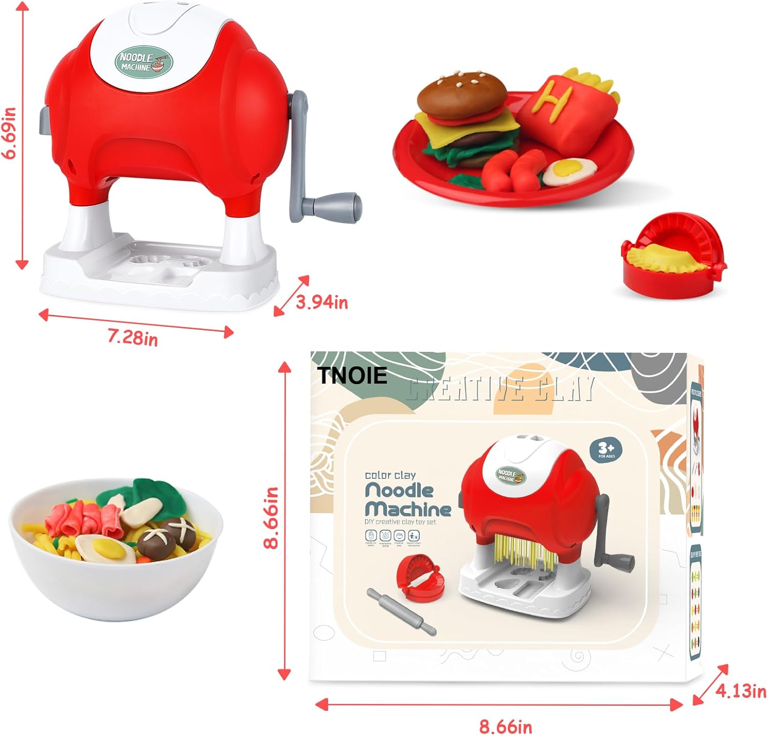 Color dough toy set, complete with a unique noodle maker that allows for speedy creation of delicious noodles. The set also comes with an array of other models to spark children’s imaginations and inspire creativity. With its made of safe materials, the color dough is safe for children and provides endless opportunities for artistic exploration without any worry about harmfulness to their health.