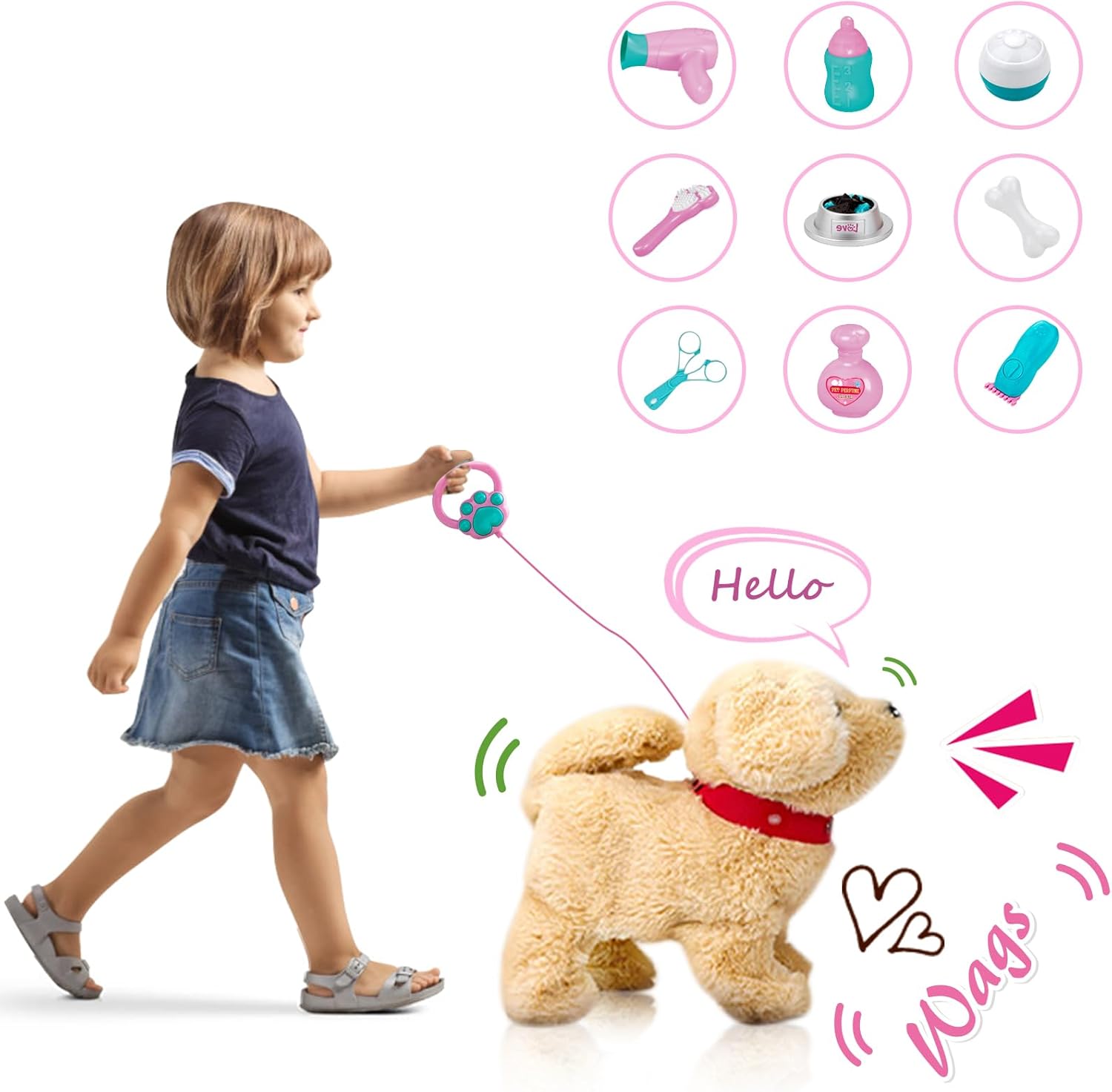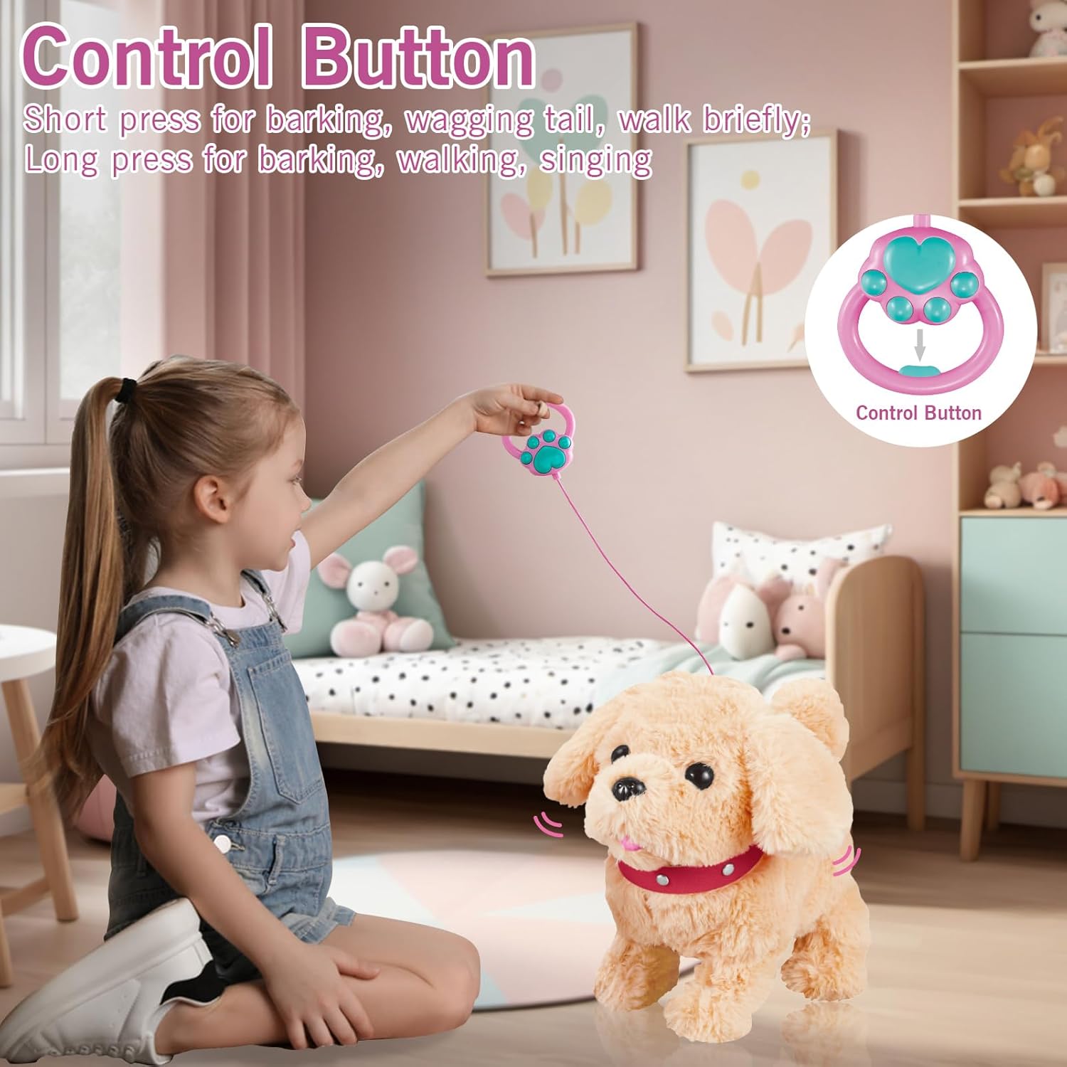 The cute plush dog can walk, sing, bark and wag its tail acting like a real puppy.