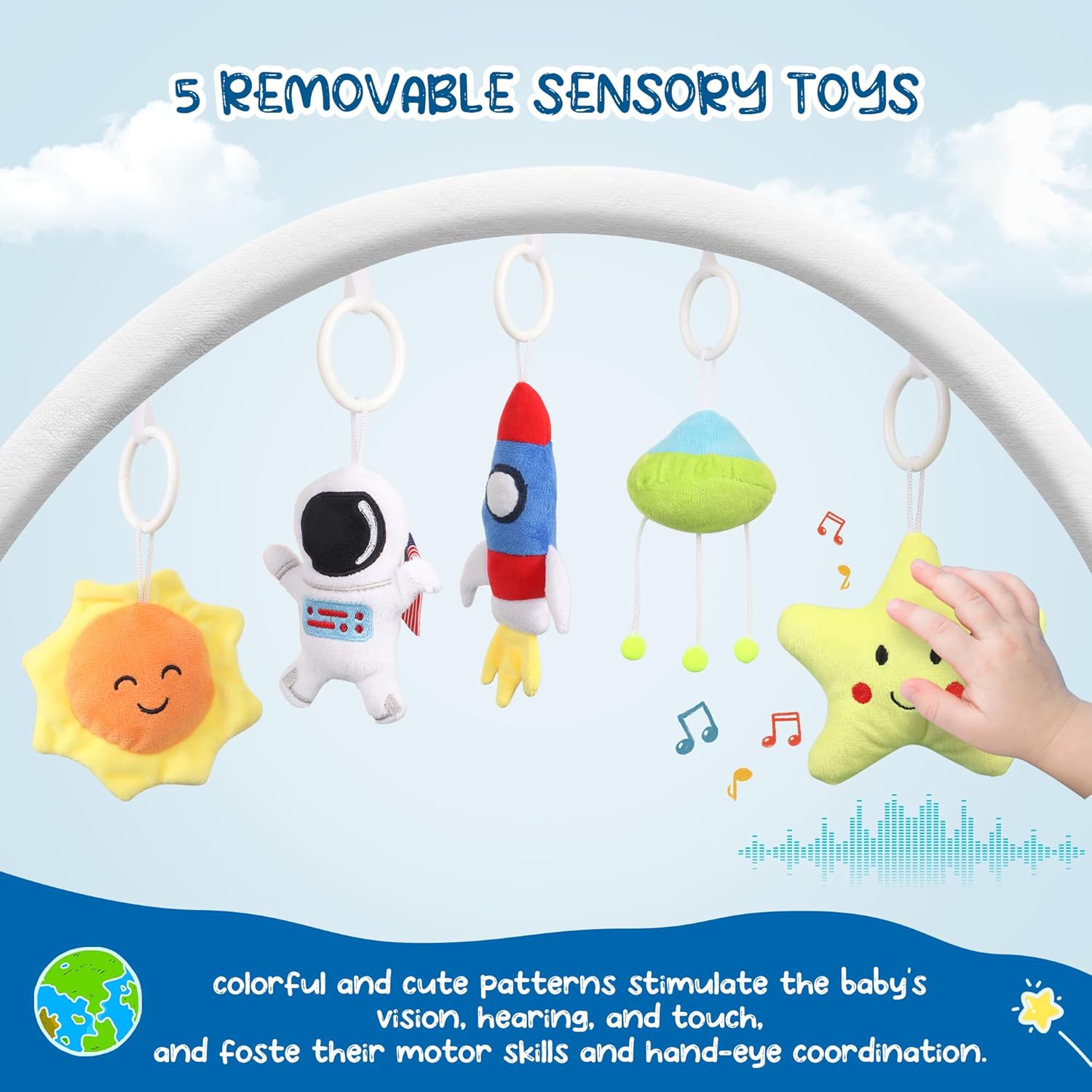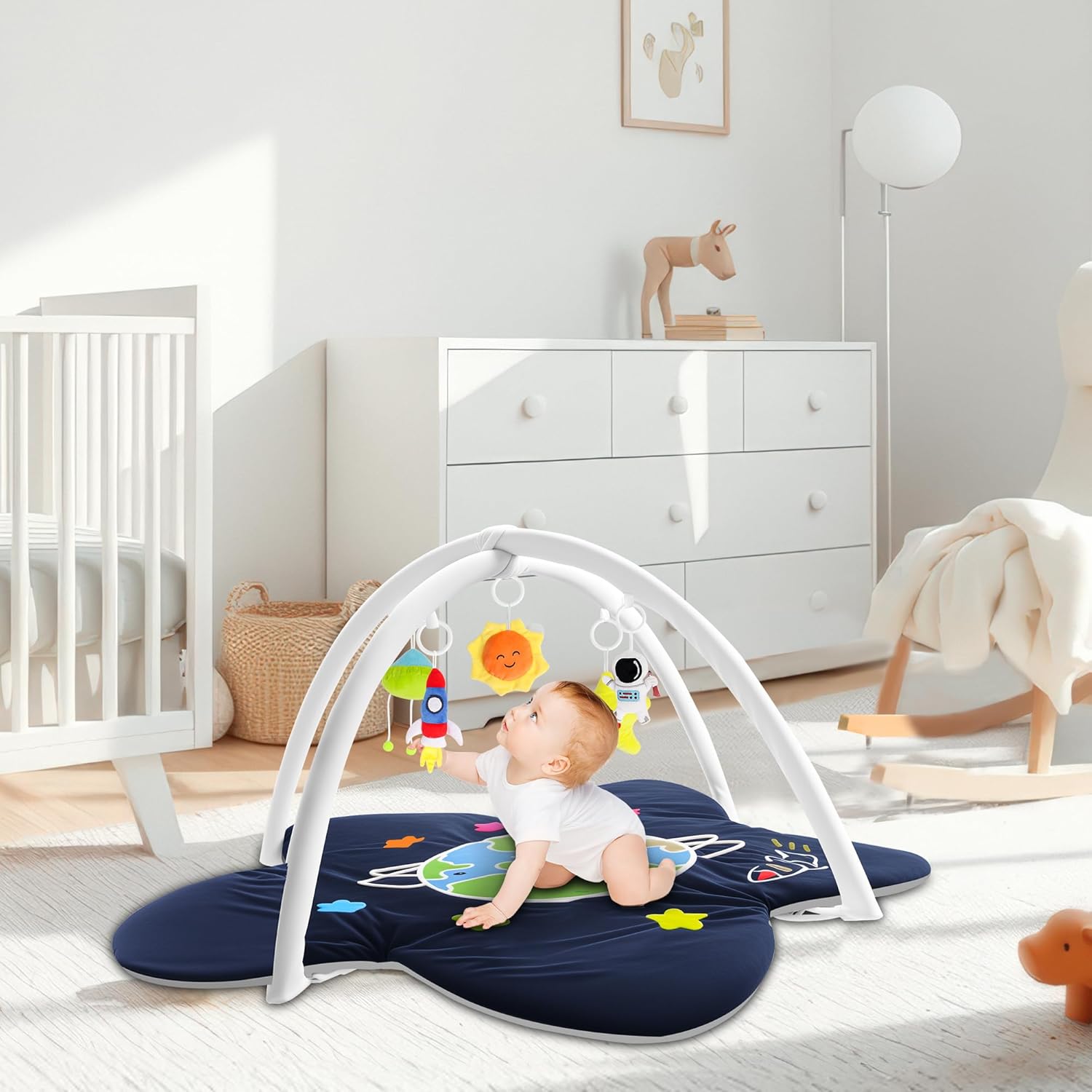 Safety First: This newborn baby essentials play mat crafted from soft, baby-safe polyester cotton, this baby gym is PVC-free & phthalate-free, which is gentle on your baby’s delicate skin, ensuring a safe and hypoallergenic environment for hours of play
