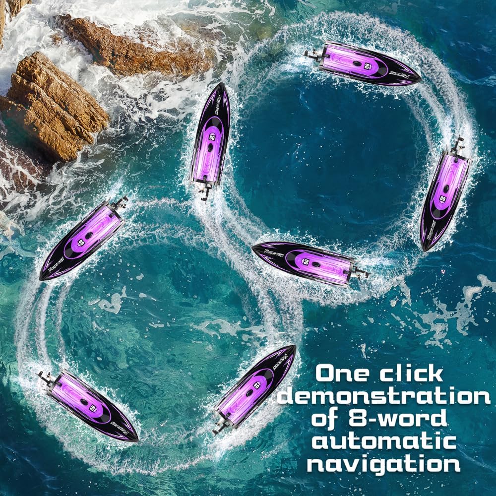 Safety and Entertainment Features: The RC boat comes with built-in LED lights for enhanced visibility and added excitement, especially in low-light conditions. Additional features include an 8-shaped demonstration, a one-key flip-and-reset function, a low battery reminder, and an out-of-range alert, ensuring a safe and enjoyable racing experience.(Remote control distance ≥120 meters)
