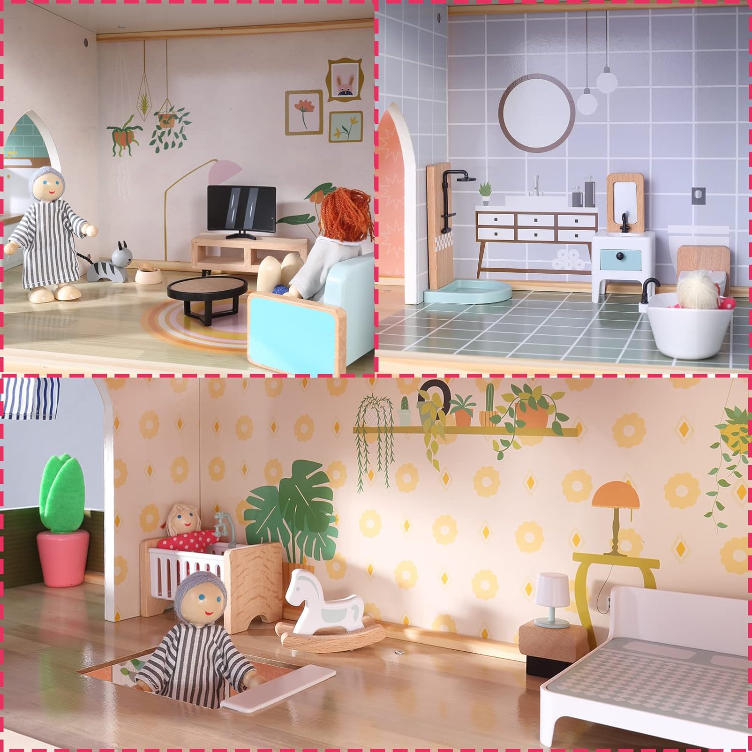 🎁QUALITY& SAFETY FEATURES — Sturdy crafted wood construction, the dollhouse can hold up against frequent use and everyday play to last for many years . Certificated by U.S. ASTM F 963-11 and European CE standard. The perfect gift for kids girls on Christmas, New year, Birthday,etc.