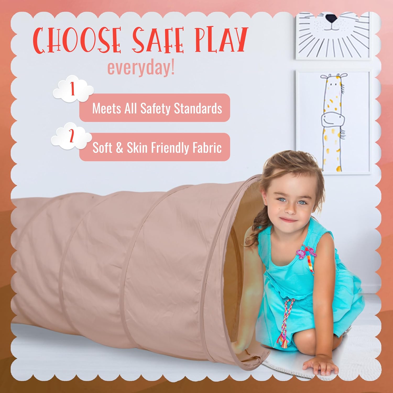 Endless Adventures Await: Ignite your children’s imagination with this 6-foot-long play tunnel, perfect for toddlers aged 2-6. Whether they’re crawling, exploring, or playing hide-and-seek, the fun never ends!