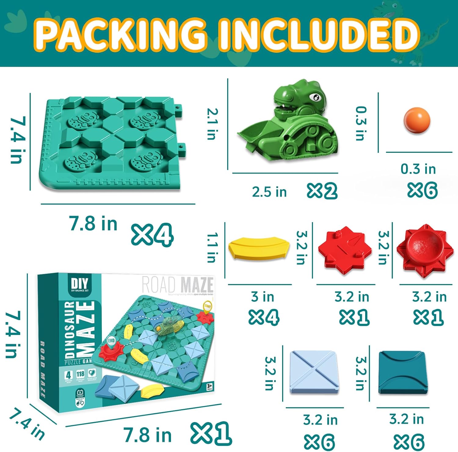 Kids Learning Toys: Build a route on the base board with different puzzle pieces to form a continuous line, wind up the dinosaur car and let the dino car take the marbles to the end. STEM logic building game is perfect for improving children’s logical thinking skills, concentration, observation and color recognition. It is the perfect educational toy for kids ages 3-8