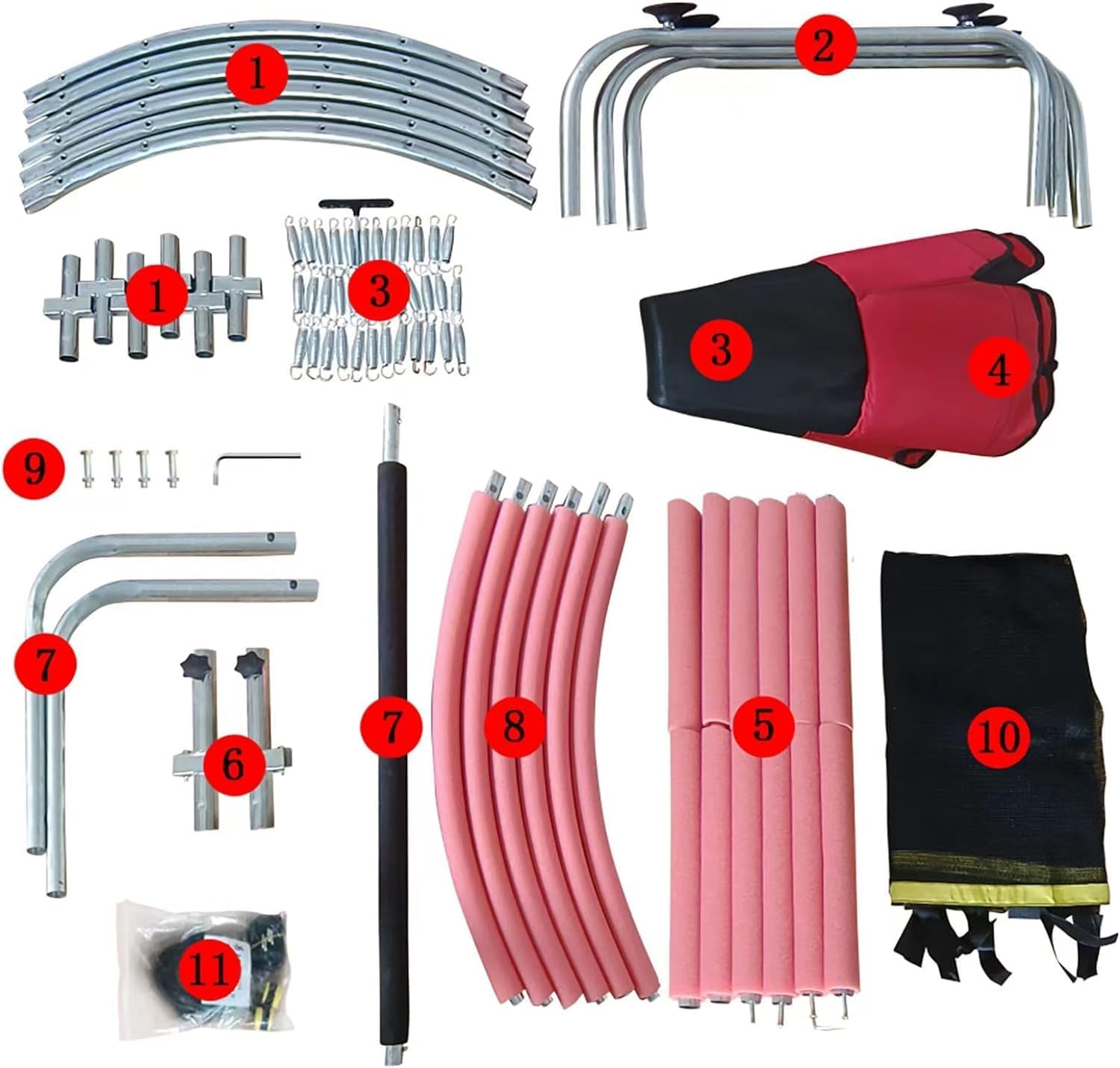 【 Rust-proof material upgrade & Bearing 220 LBS 】 5.5FT-Maximum bearing 440 LBS, bottom thickened lateral support. The built-in galvanized steel pipe of the trampoline is effectively waterproof and rust-proof, and the anti-rust coating is upgraded according to the joint position suggested by customers to ensure a safe jumping experience. Widen U-shaped base to prevent children from tipping over.