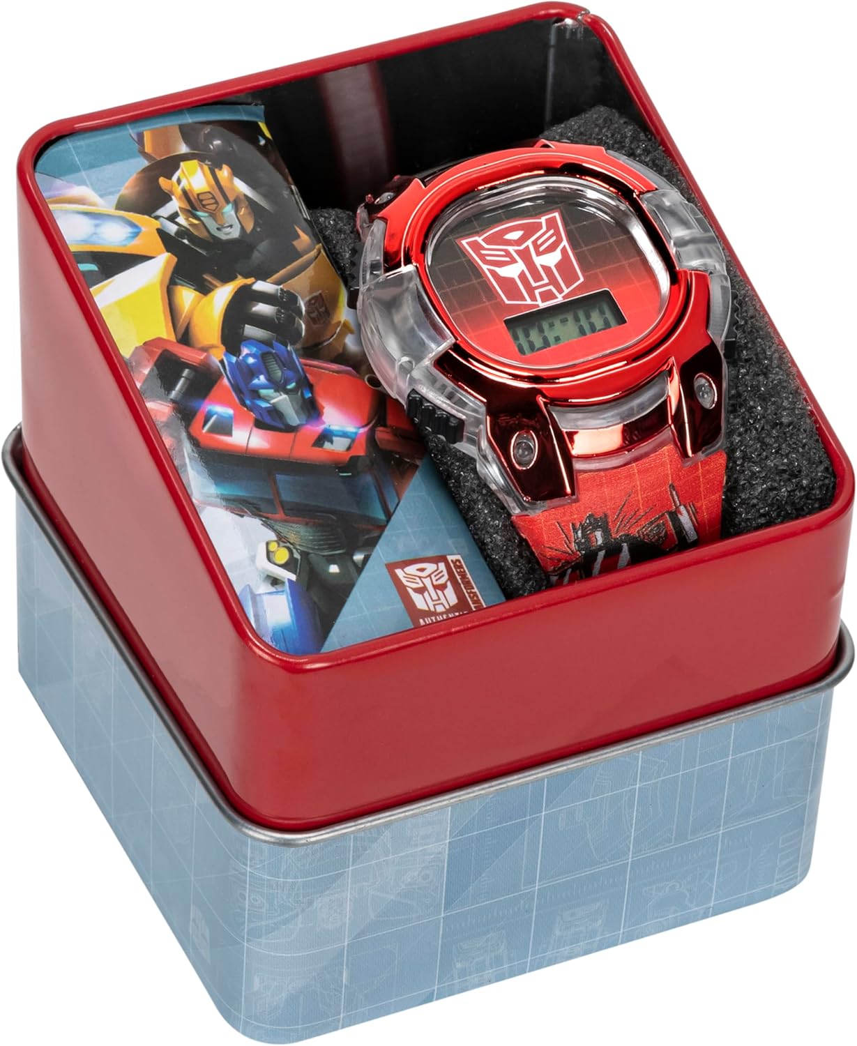 Transformers Kids Watch – LCD Display, Metallic Bezel, Adjustable Comfortable Strap, Collectible Tin – Perfect for Boys and Girls