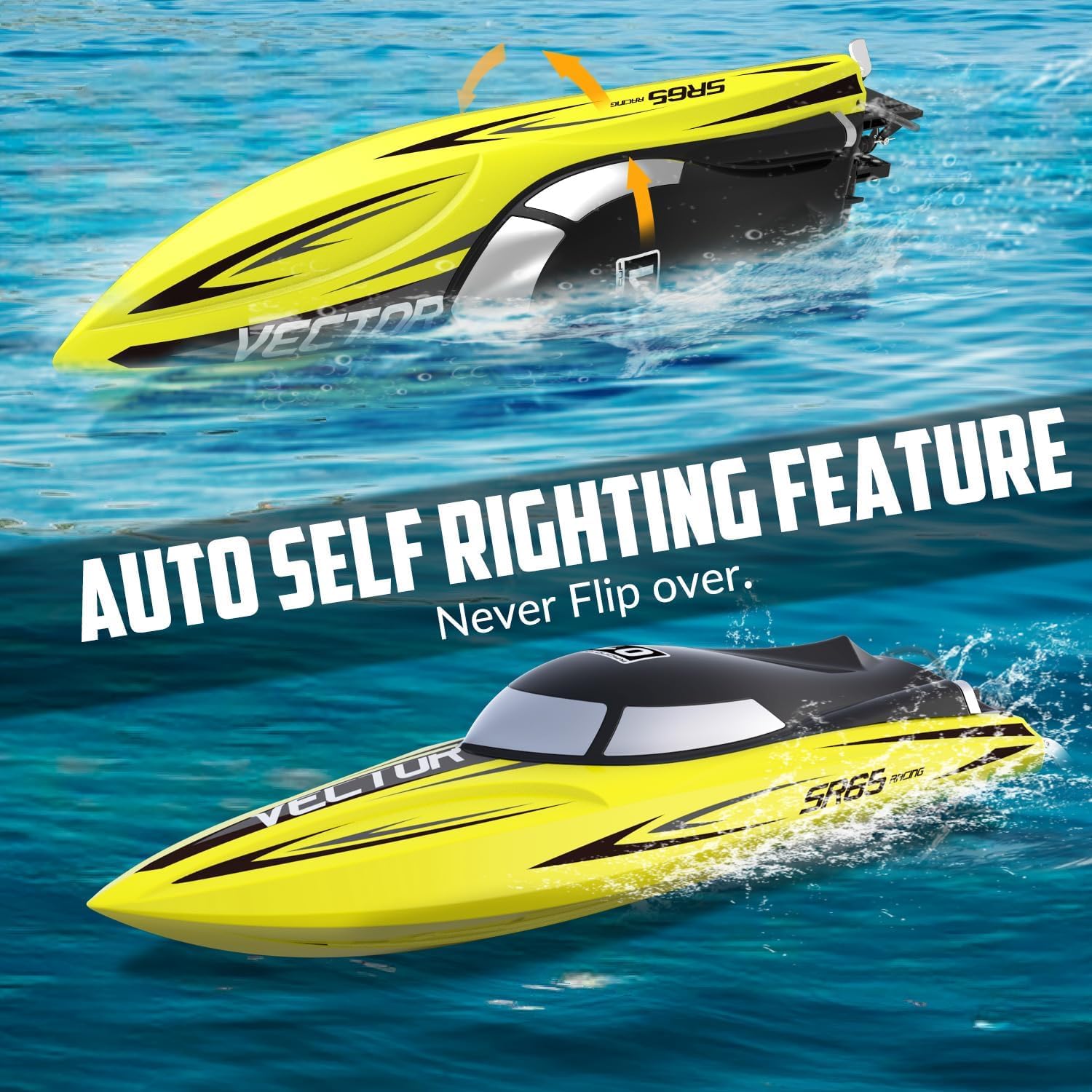 【AUTO SELF-RIGHTING & REVERSE FUNCTION】Unique anti-flip design and capsize recovery feature flips the remote control water-crafts back upright in a matter of seconds. And the upgraded with reverse-functional ESC keep rc boats out of trouble from any block.