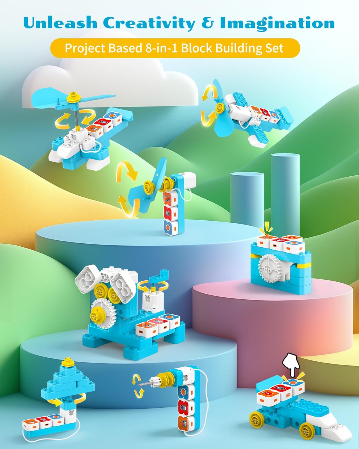 Whalesbot A1 Coding Robot for Kids Age 3+ Years, 8 in 1 Building Blocks with Multiple Sensors, STEM Science Kit Toys with Story-Based Tutorials, Ideal Gift for Children