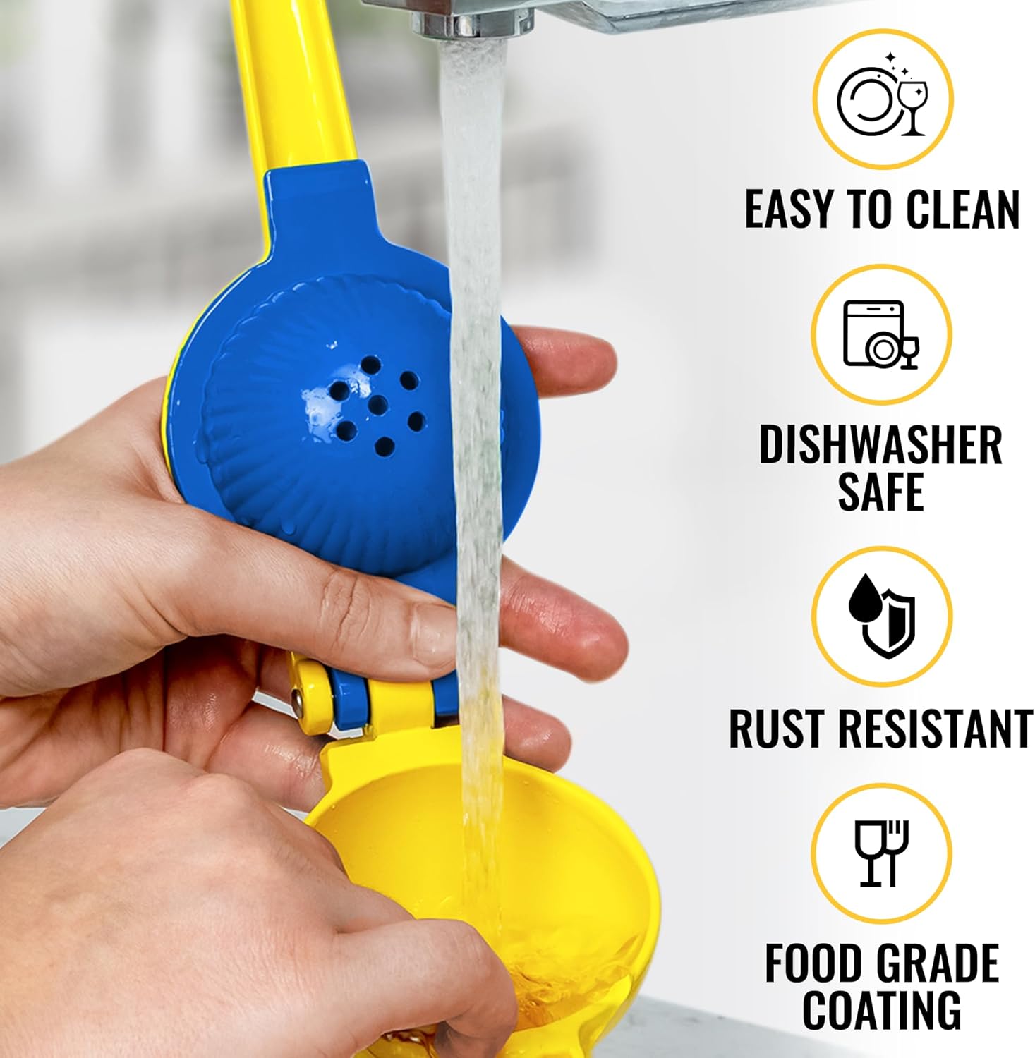 Zulay Metal 2-In-1 Lemon Squeezer Manual – Sturdy, Max Extraction Hand Juicer Lemon Squeezer Gets Every Last Drop – Easy to Clean Manual Citrus Juicer – Easy-to-Use Lemon Juicer Squeezer – Gold/Blue