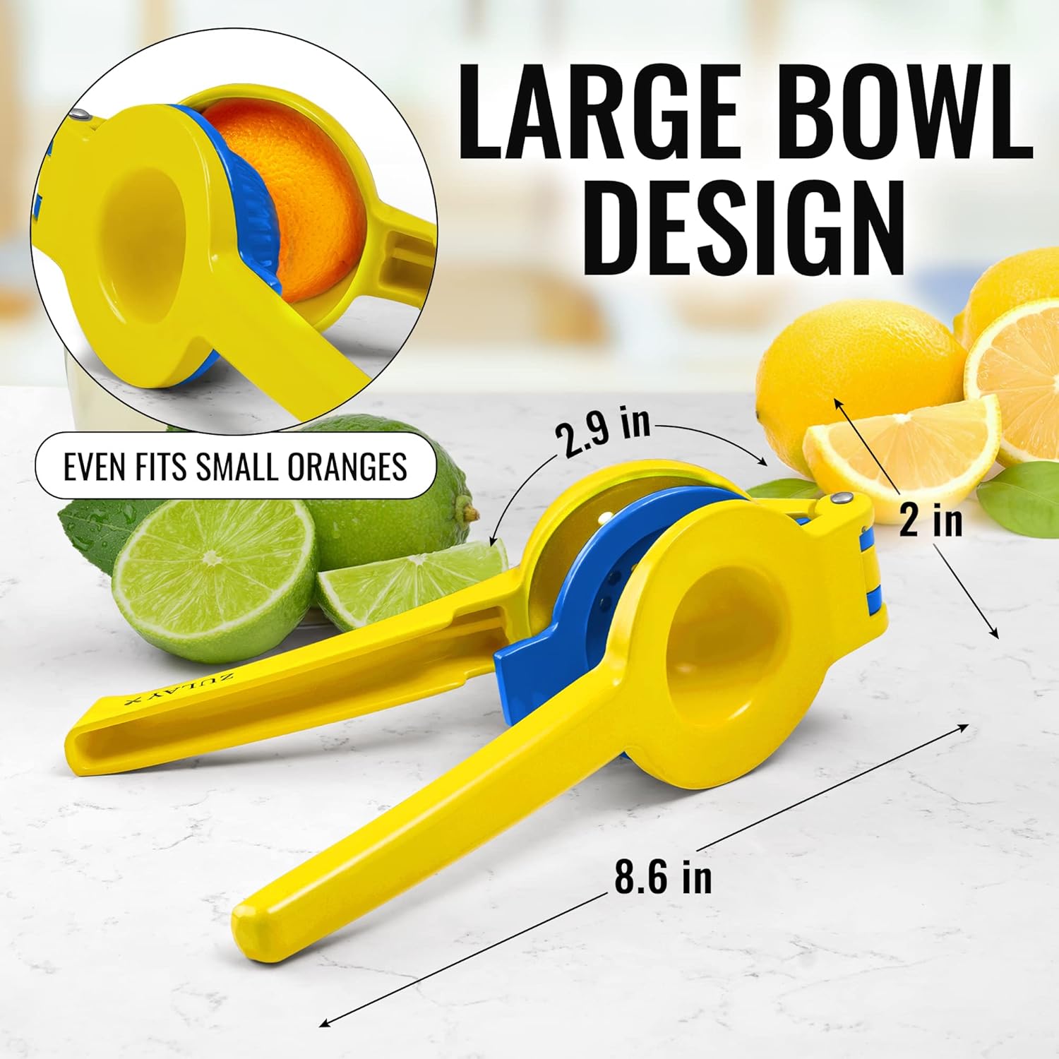 STURDY AND HEAVY DUTY BOWLS: This durable manual juicer is made from aluminum and is finished off with a food-grade coating, making it a perfect addition to your cocktail accessories for years to come. The ergonomic handle makes the lemon lime squeezer super comfortable for even kids to use.